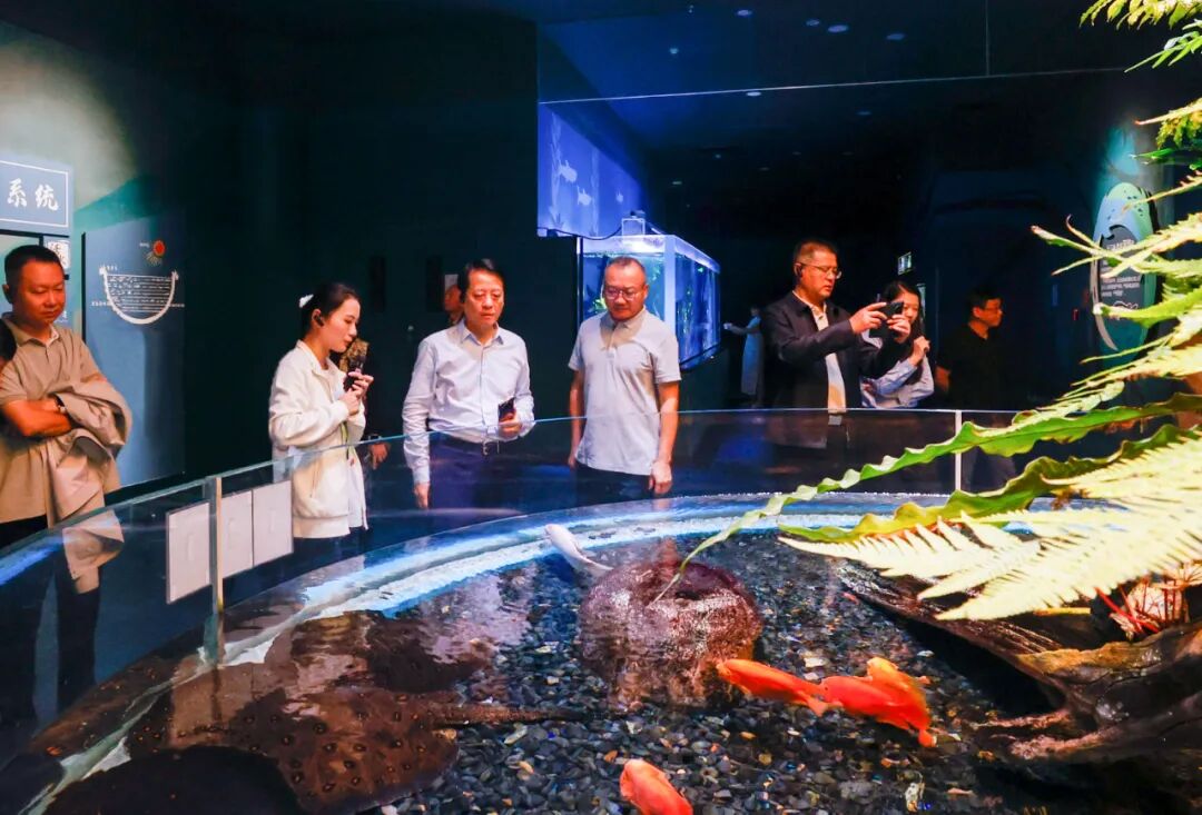 在中国·江豚湾水生生物保护基地,调研考察组实地察看基地运营情况,详细了解湖口县在水生生物保护方面的创新举措与成效。调研考察组指出,湖口县推动水生生物保护与生态文旅深度融合,为长江流域生物多样性保护提供了有益经验和实践示范。希望湖口县持续做好保护基地的管理、维护与运营,着力将其打造成为九江、江西乃至全国生态环境保护的一张靓丽名片。