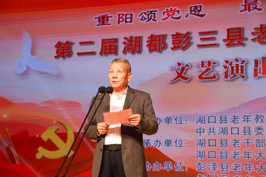 受县委书记曾宝柱,县委副书记、县长陈洋委托,樊珈妤代表县委、县政府对演出的顺利举办表示热烈祝贺。她在致辞中指出,在新落成的老年大学举办此次文艺汇演,既是湖口、都昌、彭泽三县老年大学的一次联谊交流,也是湖口老年大学成立20周年的成果汇报。