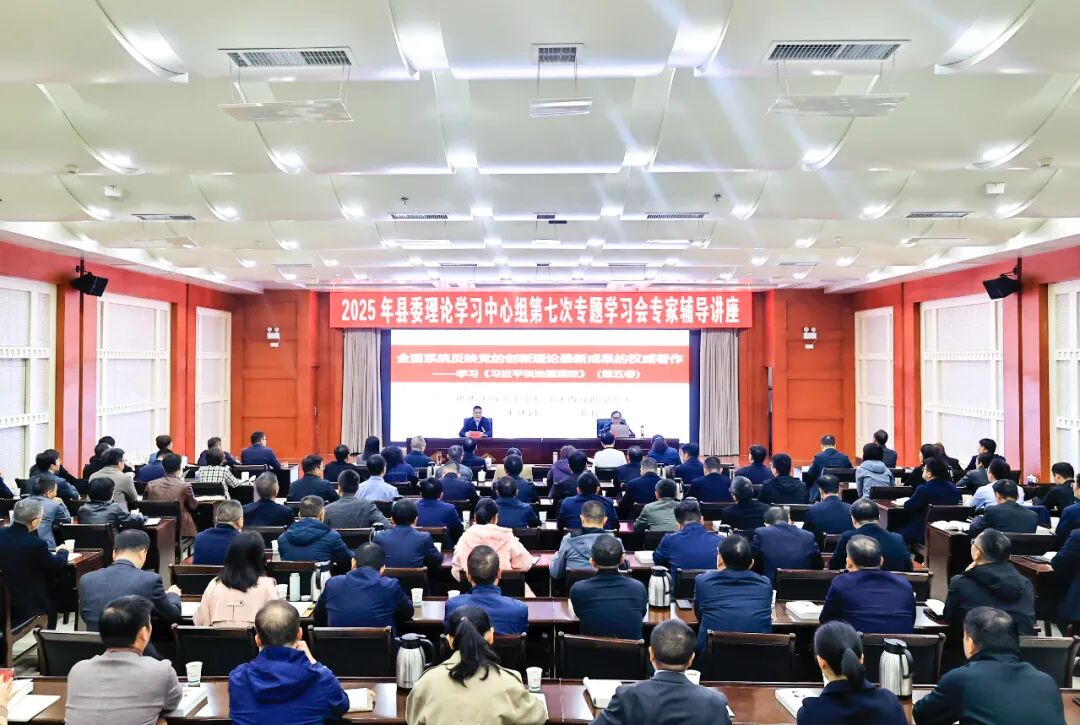 10月30日,2025年县委理论学习中心组第七次专题学习会召开。会议专题学习《习近平谈治国理政》第五卷,并邀请省委党校教授王仕国作专题授课。县委书记曾宝柱主持会议。市委宣传部副部长、市委网信办主任欧阳小竹等相关列席旁听工作组成员到会指导。县委副书记樊珈妤,县人大常委会主任史文,县政协主席梅媚等在家领导出席会议。
