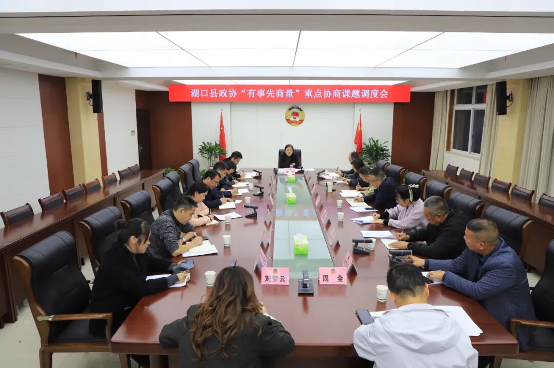 11月10日,湖口县政协召开“有事先商量”重点协商课题调度会。县政协主席梅媚出席会议并讲话。县政协副主席沈胤、周志锋,县政协秘书长张萍参加会议。