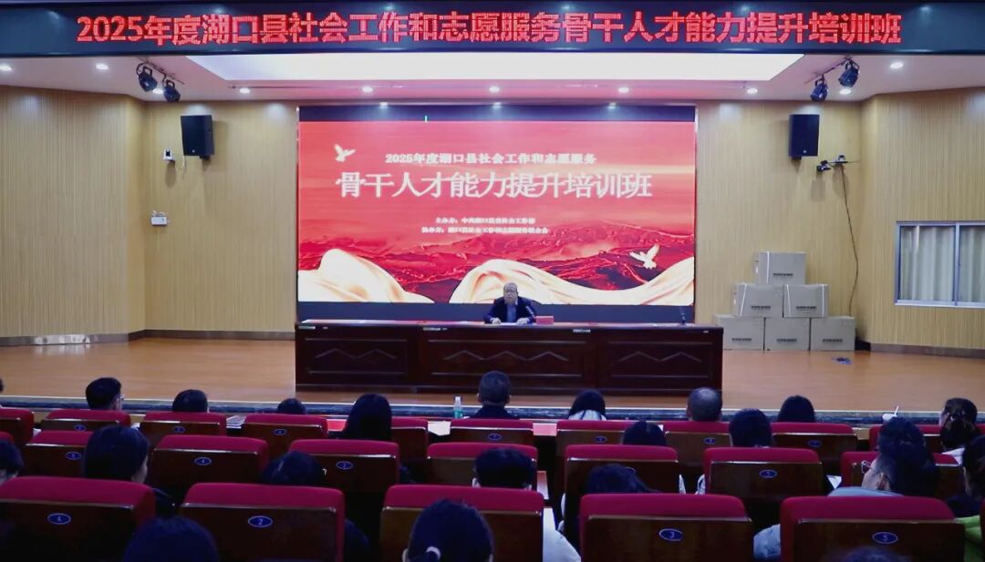 12月19日至20日,2025年度湖口县社会工作和志愿服务骨干人才能力提升培训班在县委党校举行。市委社会工作部副部长董国祥出席会议并授课。县委常委、组织部部长王利军出席开班式并讲话。省、市、县社工和志愿者代表参加开班式。