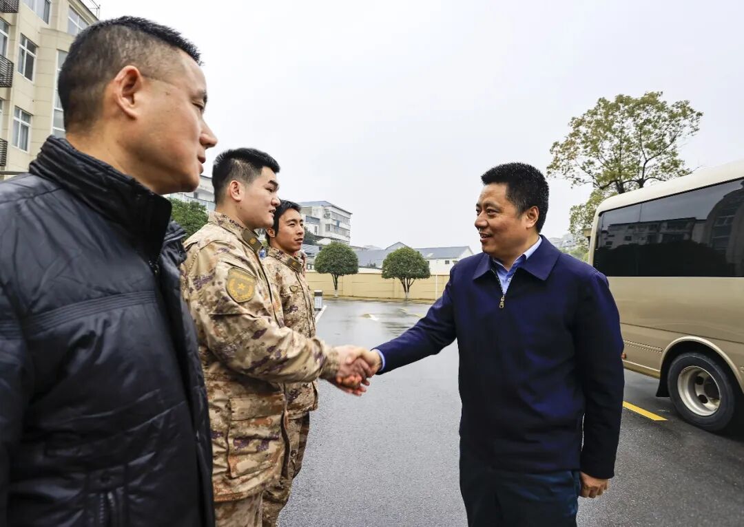 在海军湖口营区,陈洋向大家致以新年问候,对他们长期以来支持、帮助湖口经济社会高质量发展表示感谢。希望继续大力弘扬人民军队光荣传统,练就能打胜仗的过硬本领,树立作风优良的军人形象,为推动湖口全域高质量发展作出新的贡献。