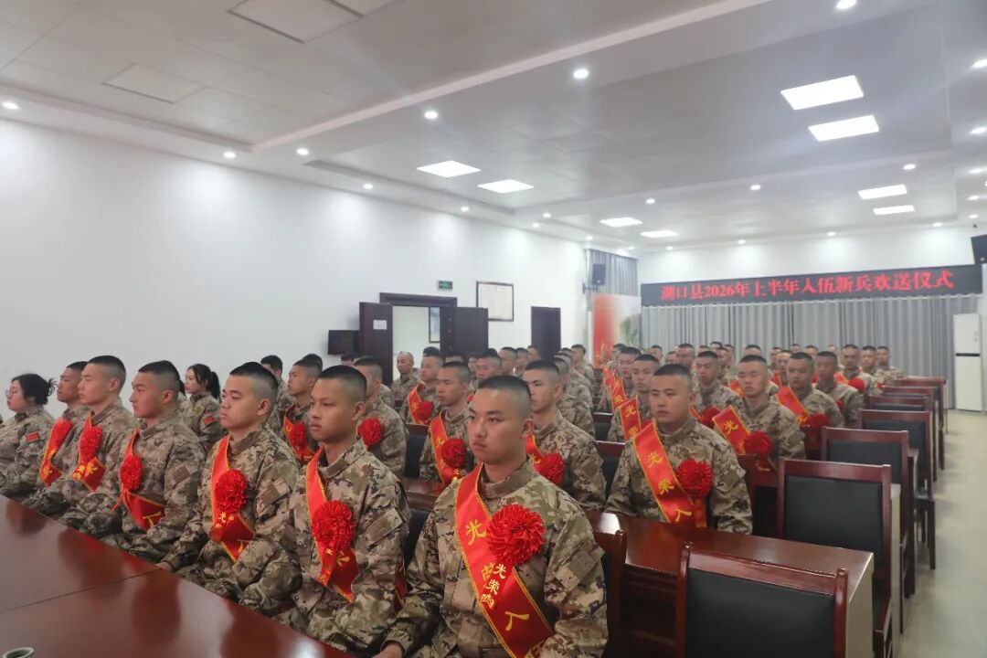 为传承弘扬拥军支前光荣传统,体现军地领导对广大入伍新兵的关心厚爱,营造参军光荣的社会氛围,提高入伍新兵光荣感、自豪感,3月17日,湖口县举行2026年上半年入伍新兵欢送仪式。县委常委、县人武部政委刘朝龙,副县长、县公安局局长万丽娜出席活动。