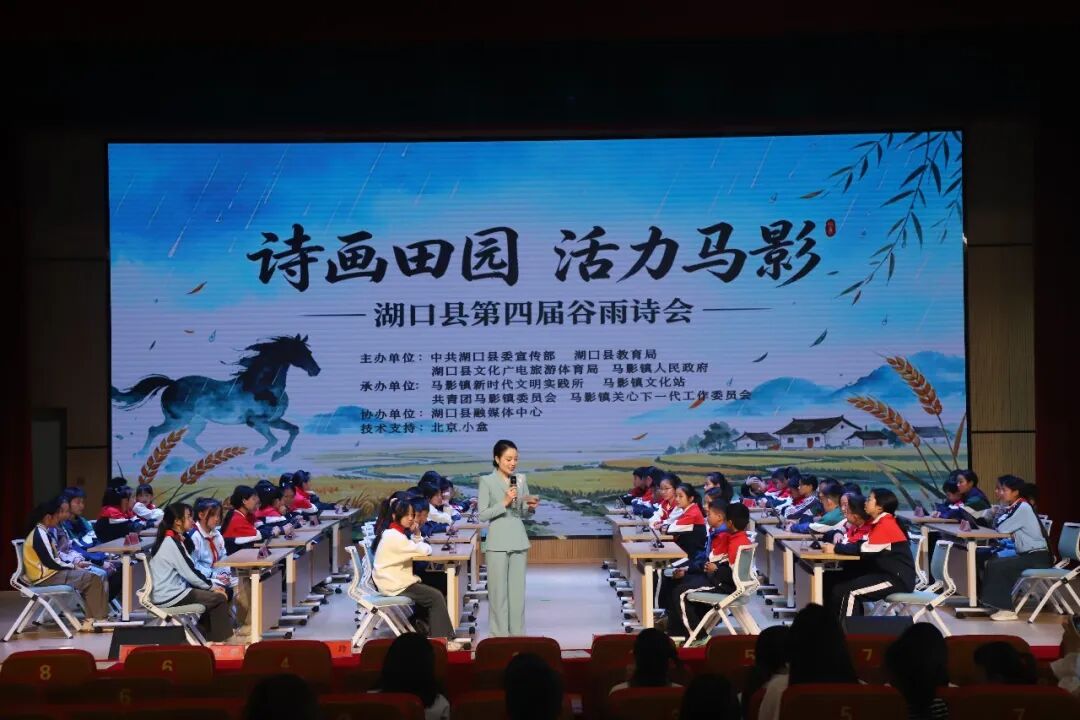 4月25日,以“诗画田园 活力马影”为主题的湖口县第四届“谷雨诗会”在县工人文化宫举行。县委常委、常务副县长侯绍胜,县人大常委会副主任吴小锋,县关工委副主任黄秋霞出席活动。