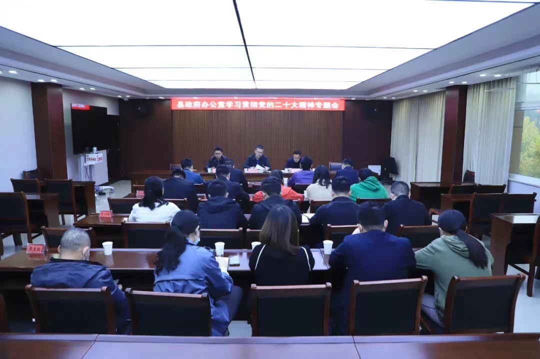 会议要求,政府办公室全体干部要把学习宣传贯彻党的二十大精神作为当前首要政治任务,深学细研、学思践悟,全面掌握党的二十大精神实质和核心要义,将大会精神与工作实际紧密结合。要坚持原原本本学、深入思考学,全面考究学、前后贯穿学,创新方式方法,学深悟透精神要义,做到学用结合、以学促用。要坚定初心使命,踔厉奋发、务求实效,全力做好办公室文稿起草、文件把关、机要保密、人民防空、督查督办、信息公开、上传下达、综合协调、疫情防控等工作,要充当好智囊、争做优先锋,不断提升“三办”“三服务”能力水平。
