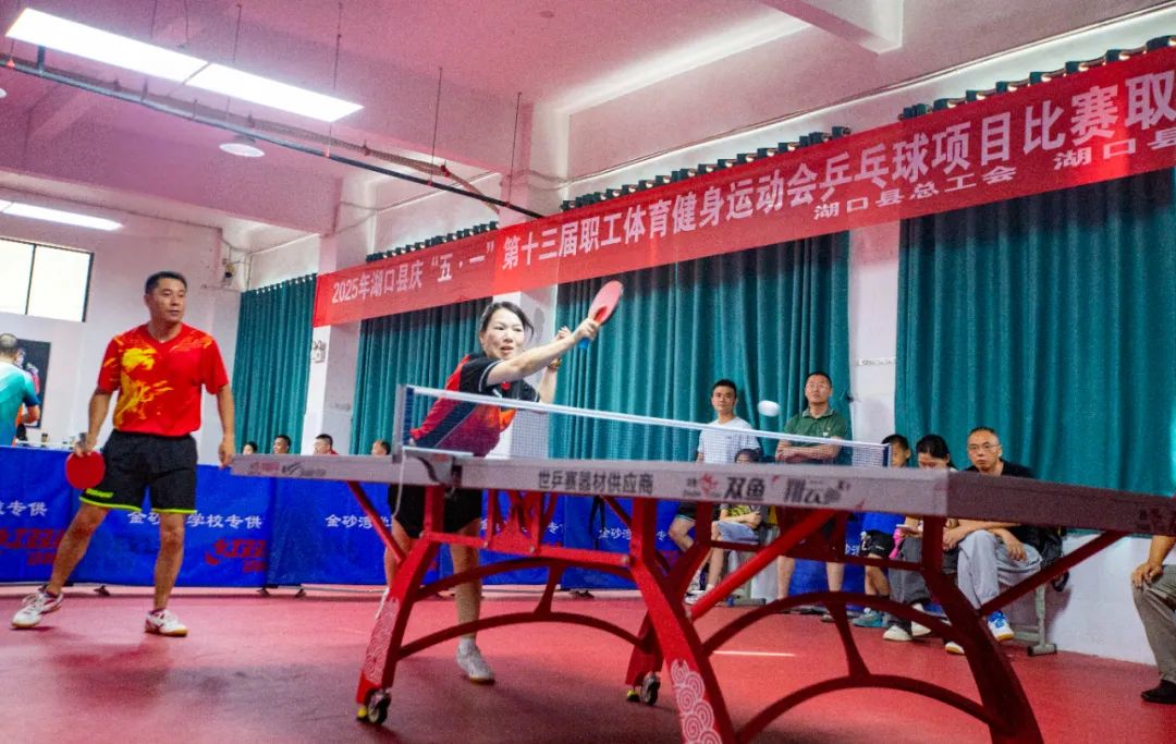 6月28日,湖口县第十三届职工体育健身运动会乒乓球比赛在金砂湾学校乒乓馆火热开赛。来自全县的29支代表队共200余名运动员相约乒坛盛会,上演一场场精彩对决。