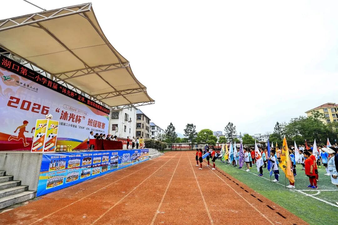 春风送暖,绿茵逐梦。4月16日上午大课间,湖口县第二小学首届 “沐光杯” 足球、篮球班级联赛启动仪式在学校足球场举行。全校师生齐聚赛场,共同开启这场充满活力与梦想的校园体育盛宴。