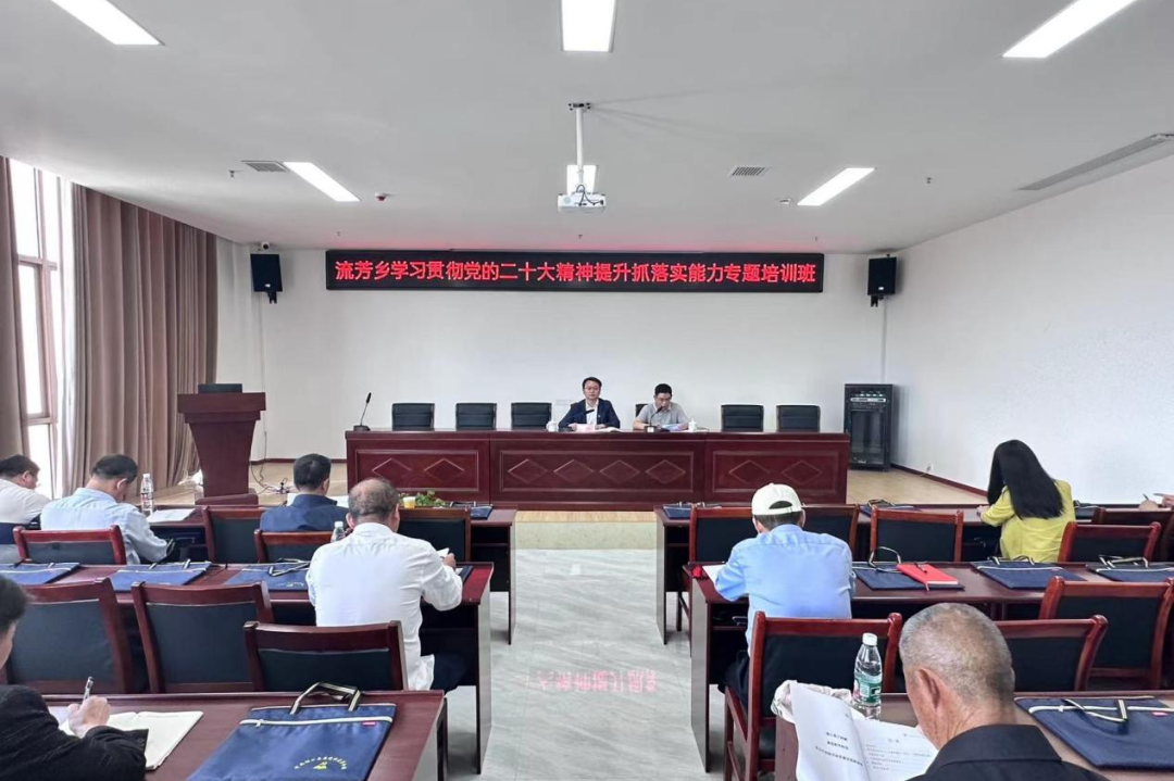 近日,流芳乡组织领导班子成员、乡村两级党员干部在乡豆文化产业园二楼会议室举办学习贯彻党的二十大精神提升抓落实能力专题培训班。