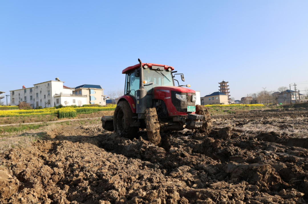 “我们今天大概育秧300多亩。育秧完成后,秧盘将进入暗化催芽室进行催芽,然后再摆盘。今天农事服务中心的拖拉机已经在翻耕、耕沟灭茗。前期我们对育秧流水线进行了检修和保养,对农机也进行了全面检查,确保今天育秧过程中机械正常运转。经过炼苗后,在育秧大棚内大约一个月的培育,再进行移栽,直接下大田。”蔡礼桂进一步介绍道。